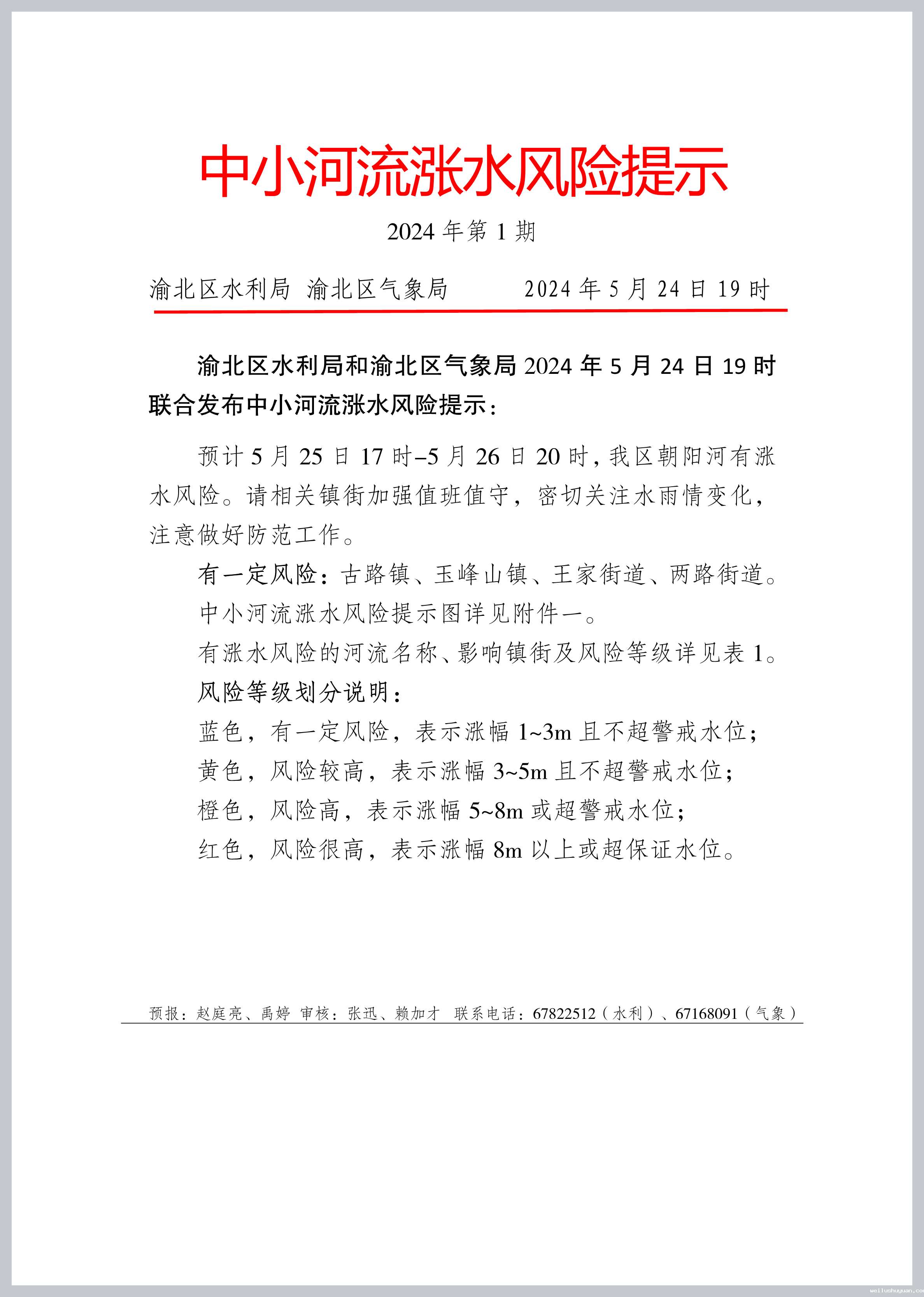 dot雷竞技官方水利局中小河流涨水风险提示2024年第1期
