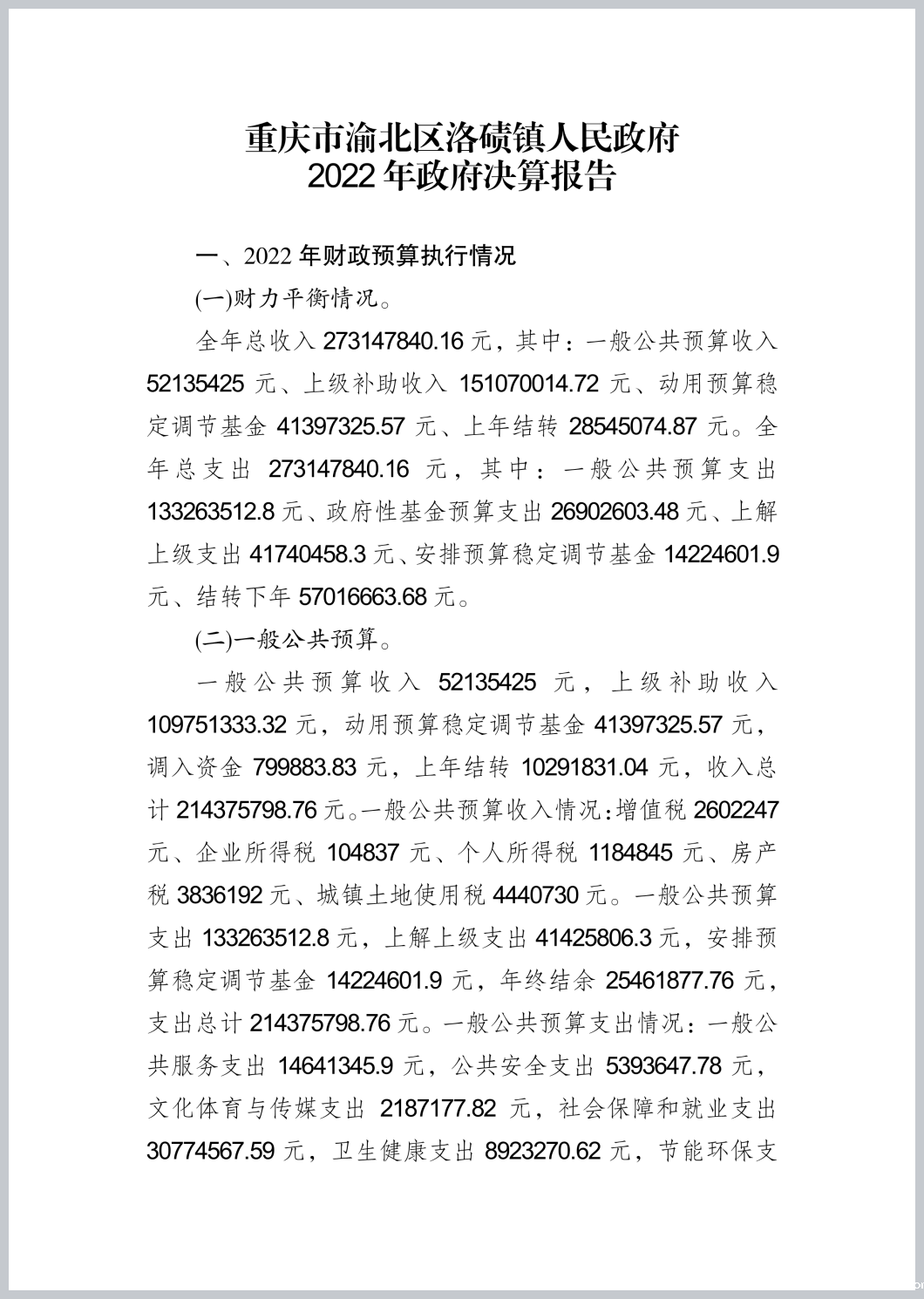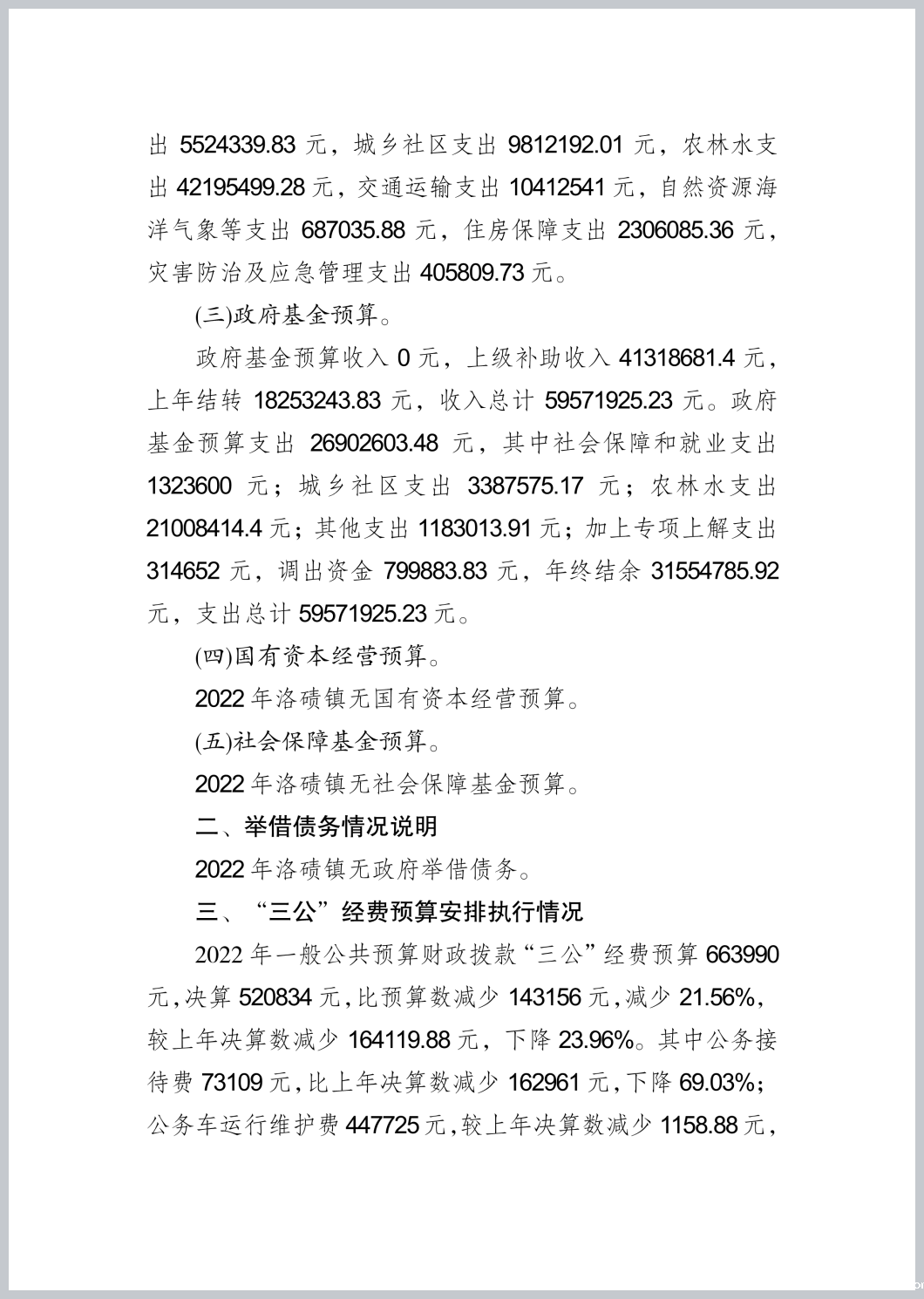 dot雷竞技官方洛碛镇人民政府2022年政府决算公开